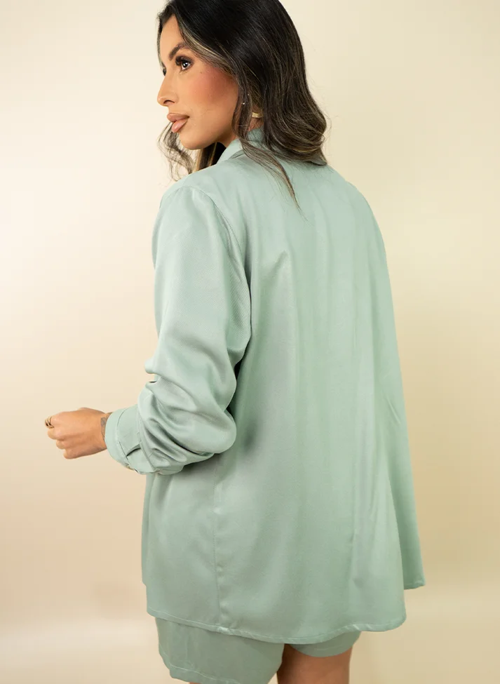 Camisa em viscose sarjada, tecido com caimento leve e toque macio. A peça possui corte amplo e alongado, seguindo modelagem mais tradicional com vista e colarinho simples, mangas longas e punhos com botões e duas pregas. O tecido confere mobilidade, frescor e leveza, adaptando essa peça versátil e atemporal para o verão. A camisa pode ser usada como a base do look ou como uma sobreposição.