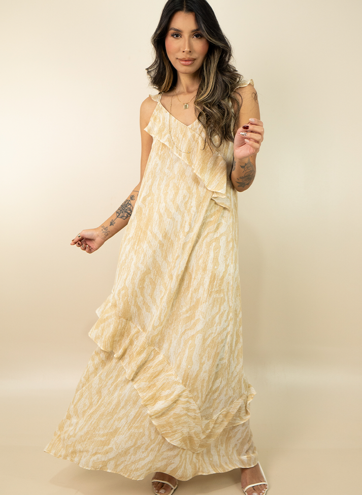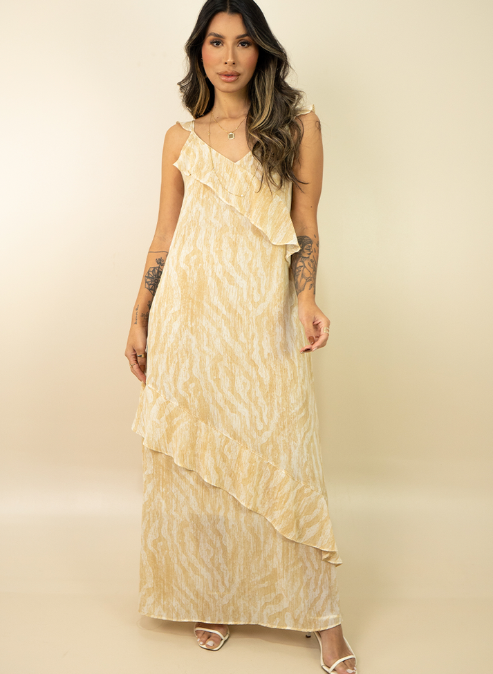 -22%Frete Grátis Sul e SudesteVestido Longo Com Babados E Estampa Em Folhagemde R$ 499,90 porR$ 370,41 no PIX