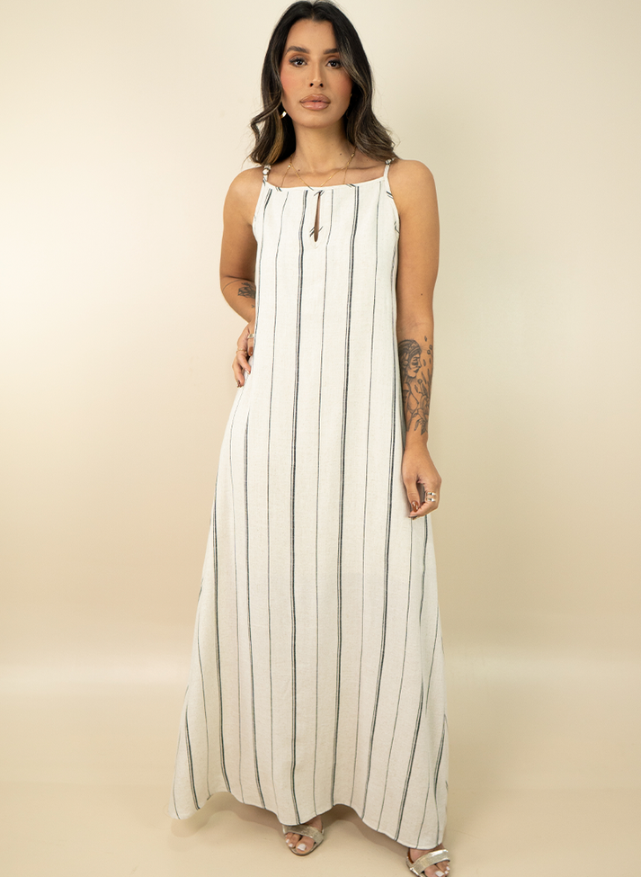 -21%Frete Grátis Sul e SudesteVestido Longo Listrado Com Bolsos Externosde R$ 559,90 porR$ 417,91 no PIX